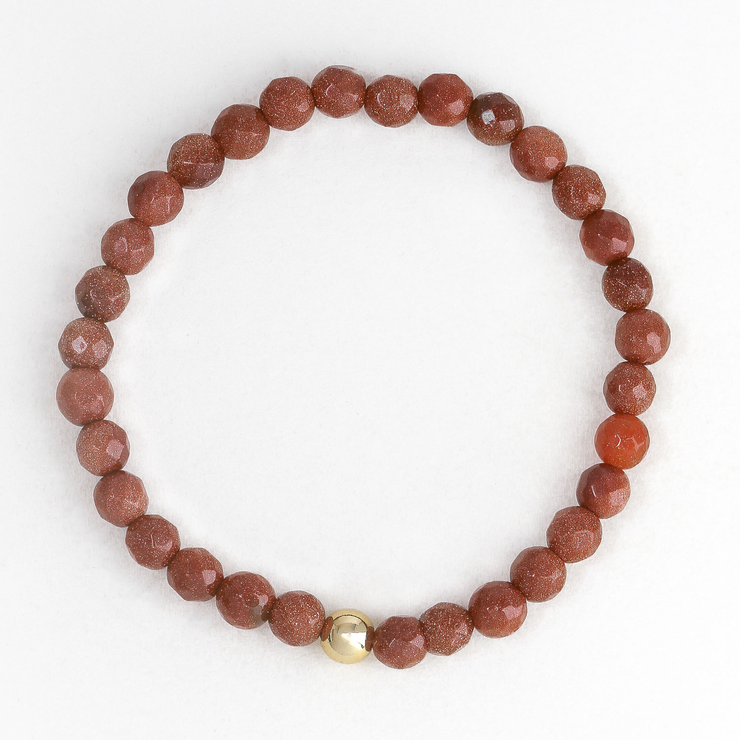 Earthy elegance! Dieses edle Armband besteht aus facettiertem Jaspis in warmem Rotbraun mit feinem Glitzern. Die natürlichen Farbnuancen verleihen jedem Stück seinen unverwechselbaren Charakter. Eine goldene Kugel bringt einen modernen Kontrast und setzt einen eleganten Akzent. Elastisch gefertigt, angenehm zu tragen und perfekt kombinierbar – ob als dezentes Highlight oder im Mix mit anderen Schmuckstücken.