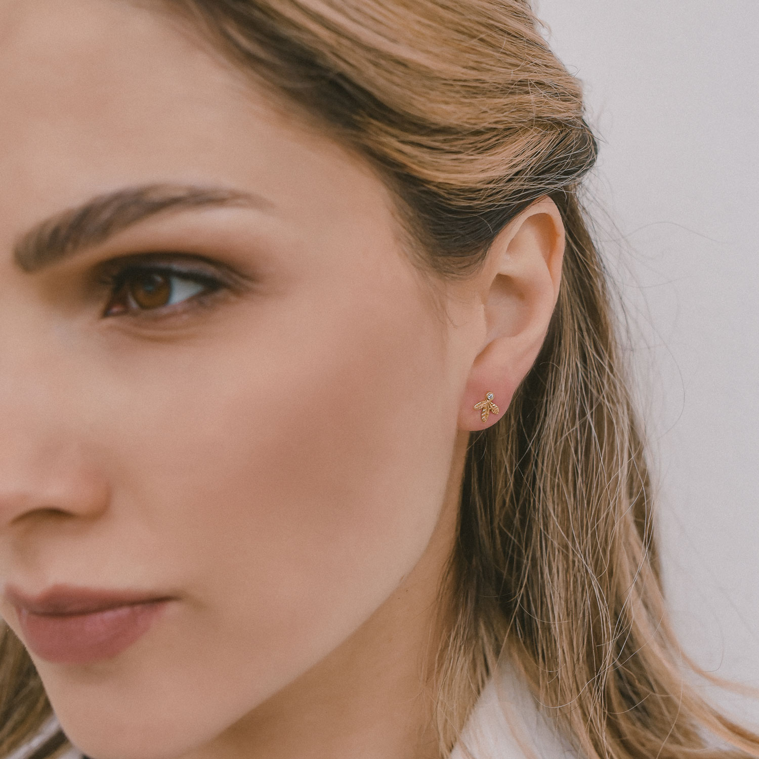 Diese zauberhaften Ohrstecker sind mit einen kleinen verführerisch funkelnden Zirkonia in einer Blatt-Form geschmückt. Die exklusiven Schmuckstücke sind dezente Begleiter für jeden Anlass. Sie sind etwa 6 mm gröss und aus 925 Silber gefertigt.