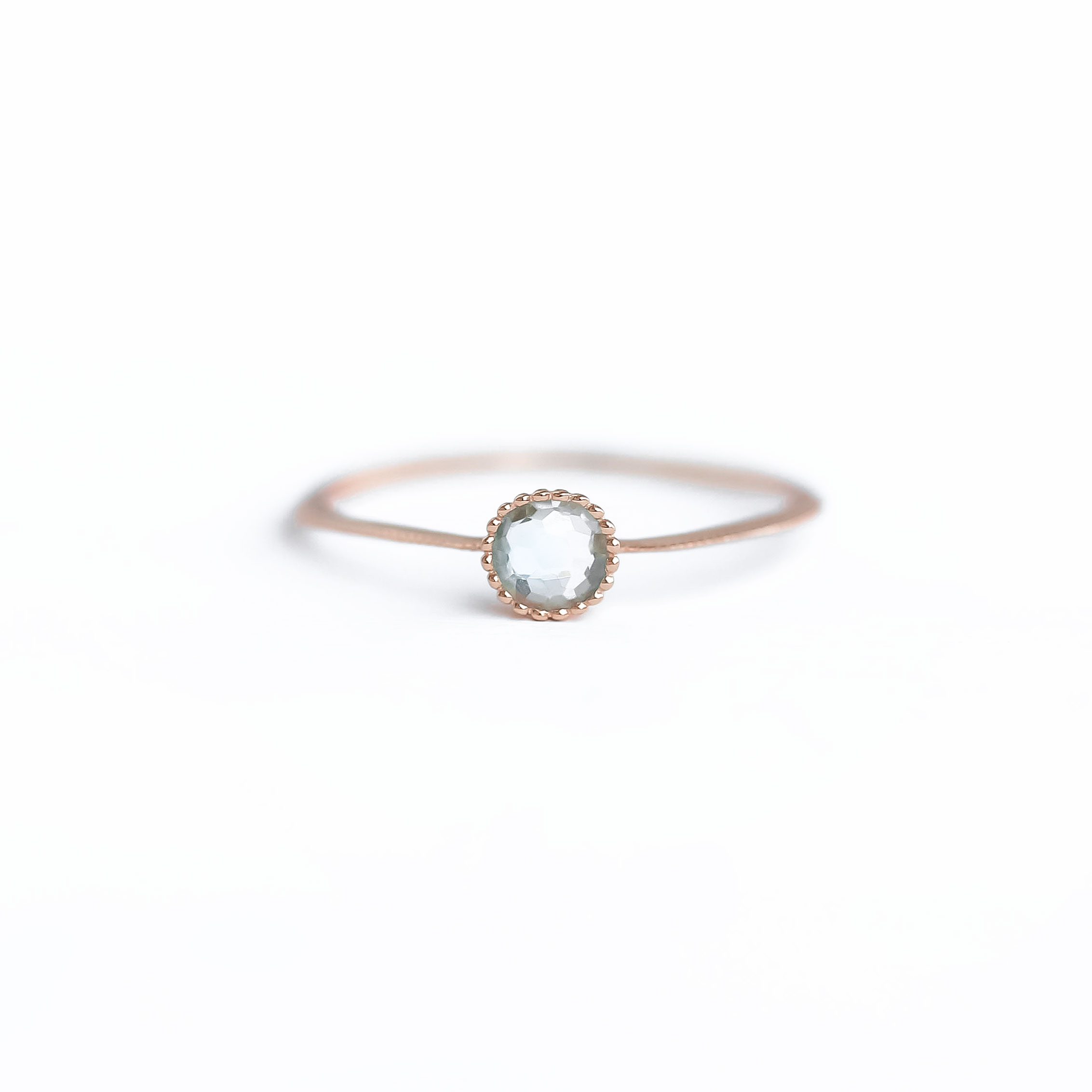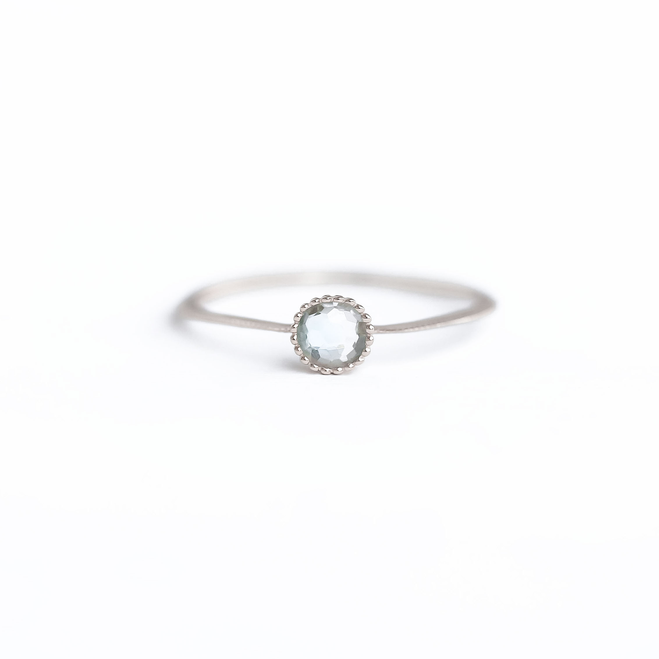 Dieser bezaubernde und filigrane Ring ist mit einem zart funkelnden Aquamarin geschmückt. Das exklusive Schmuckstück ist ein dezenter Begleiter für jeden Anlass. Wunderschön auch mit anderen Ringen zu kombinieren. Der Edelstein hat einen Durchmesser von etwa 4 mm.