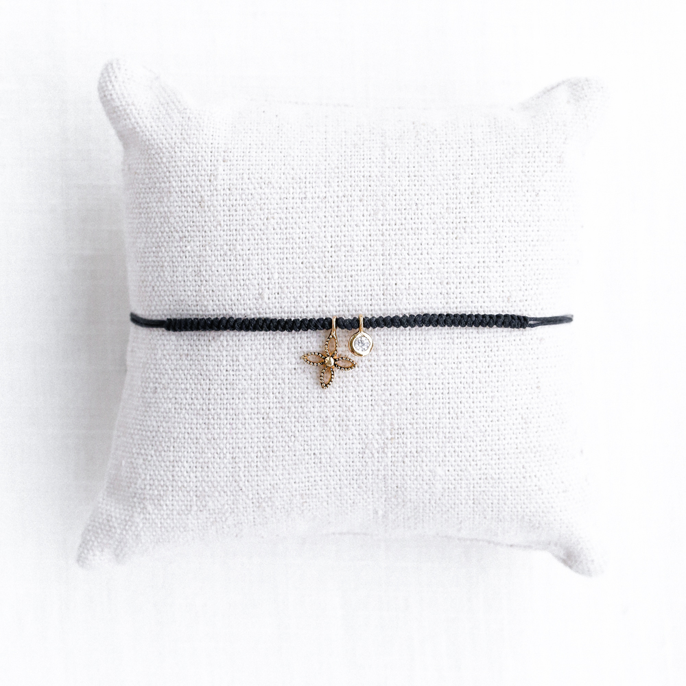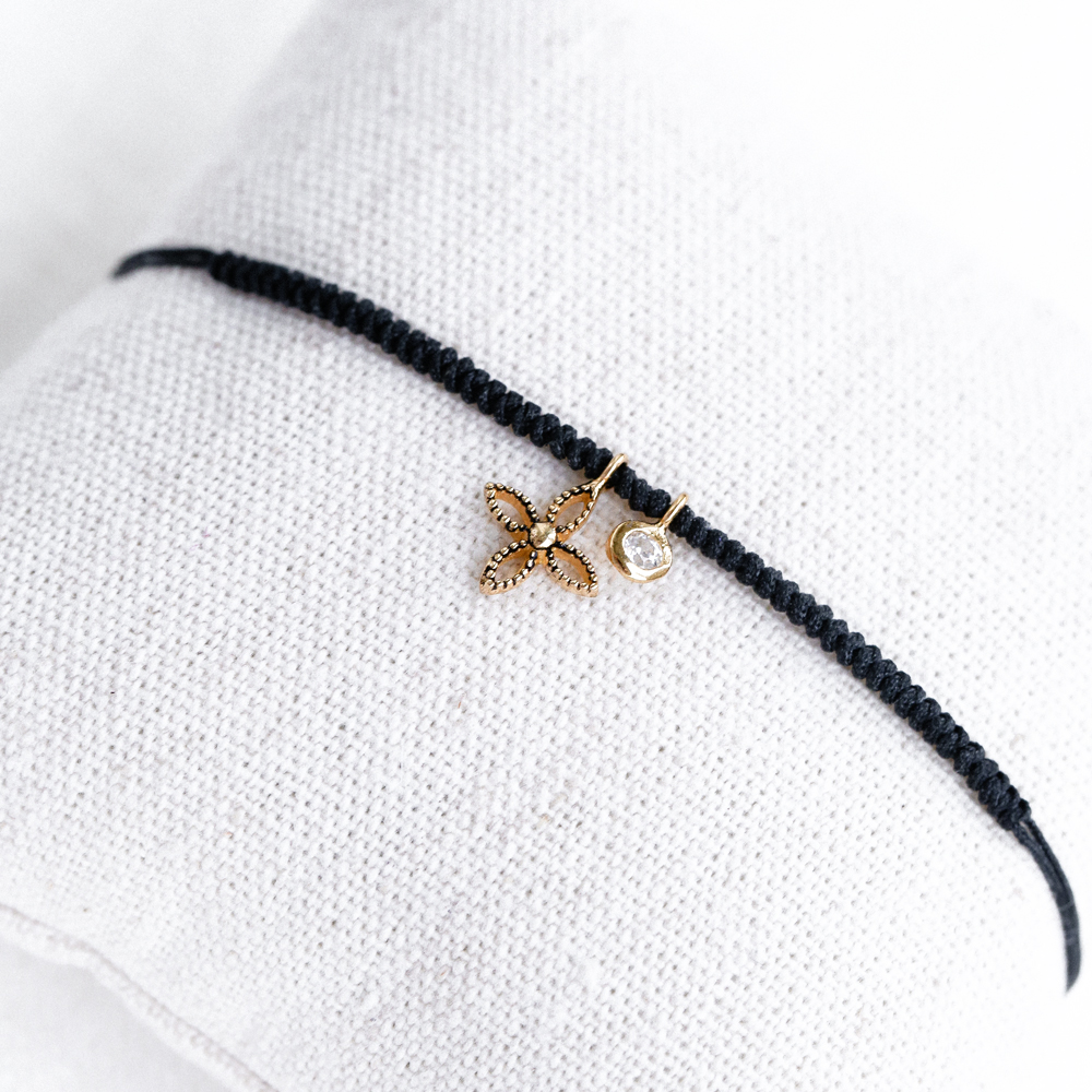 A delicate bracelet made of 925 silver and high quality black fabric ribbon. Great basic piece that can be wonderfully combined with other bracelets. The macrame closure makes it quick and easy to put on any wrist. Also available in rose gold and yellow gold plating.