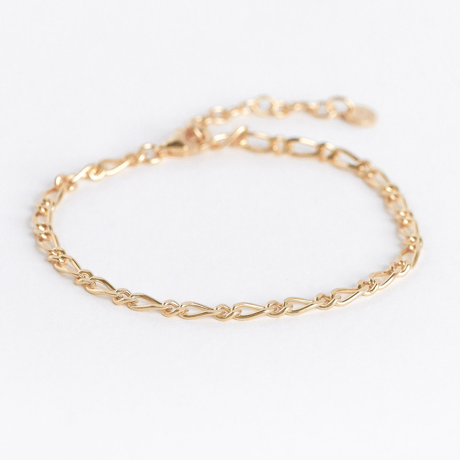 Delicate, playful, and absolutely timeless: The HELY bracelet is a subtle statement piece for those who appreciate refined elegance. Its finely crafted, artfully twisted chain adds a touch of lightness and feminine charm to any look - perfect for everyday wear or as a soft highlight for special occasions. Made from high-quality 925 silver and finished with luxurious 18K gold plating, this piece will accompany you in style through every season. With a length of 16.5 cm plus a 3 cm extension, it offers optimal comfort and adapts beautifully to any wrist.