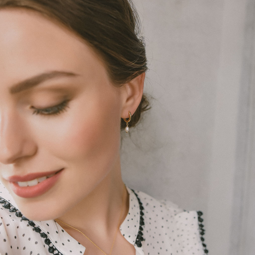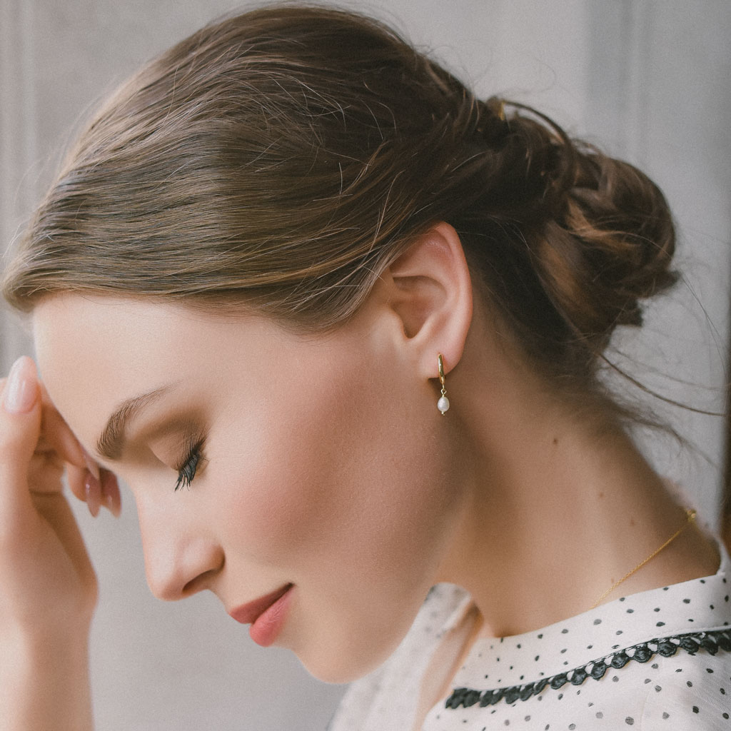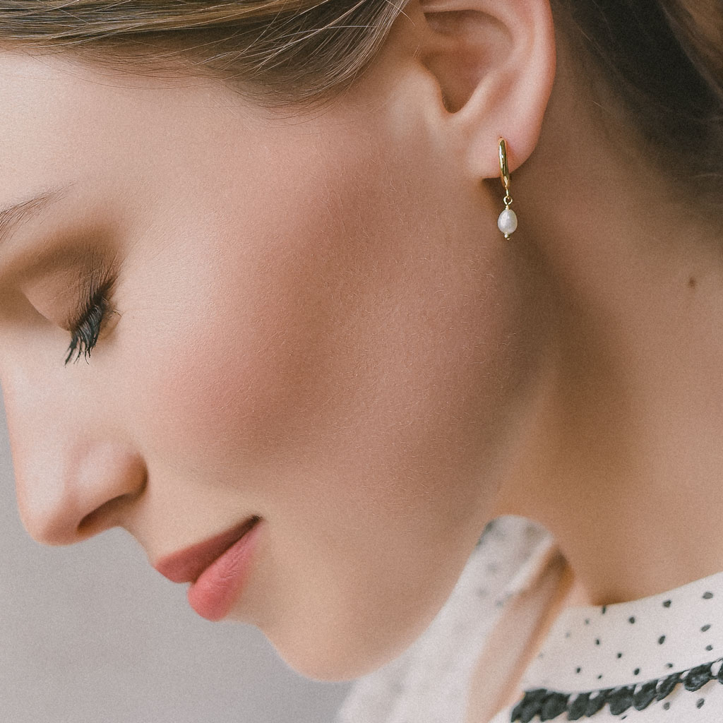 Featuring a single freshwater-pearl dangling on mini hoop earrings, are these earrings the perfect blend of playful and classic. They underline the feminine touch with their romantic design. They are about 1.7 cm long and made of 925 silver.