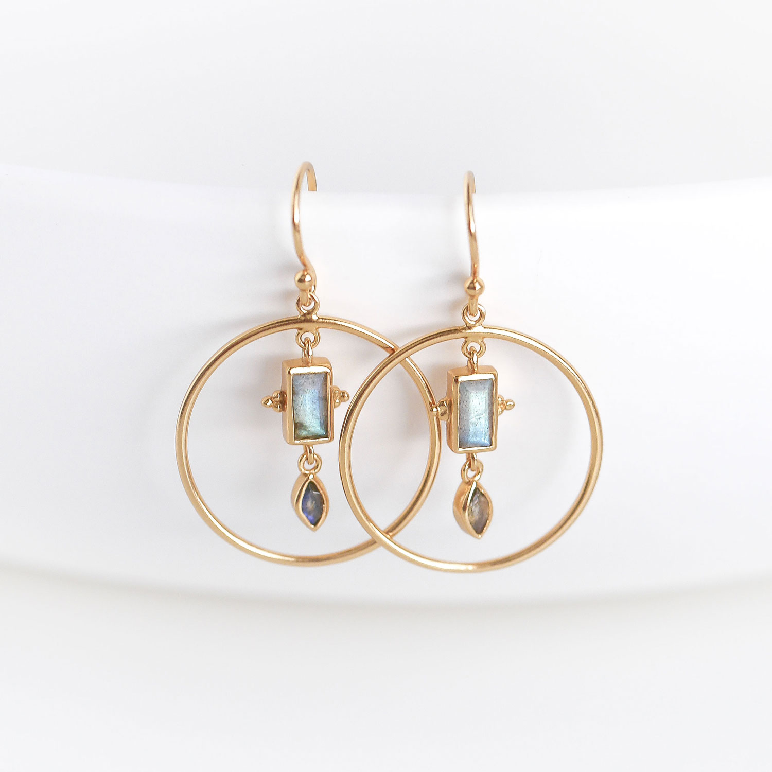 The greatest elegance lies in the smallest treasures. Tha light is irresistibly reflected in the facets of these labradorites. The earrings have a diameter of 2.2 cm and come with stopper plugs so you don`t lose them. These earrings will make you shine all day long!