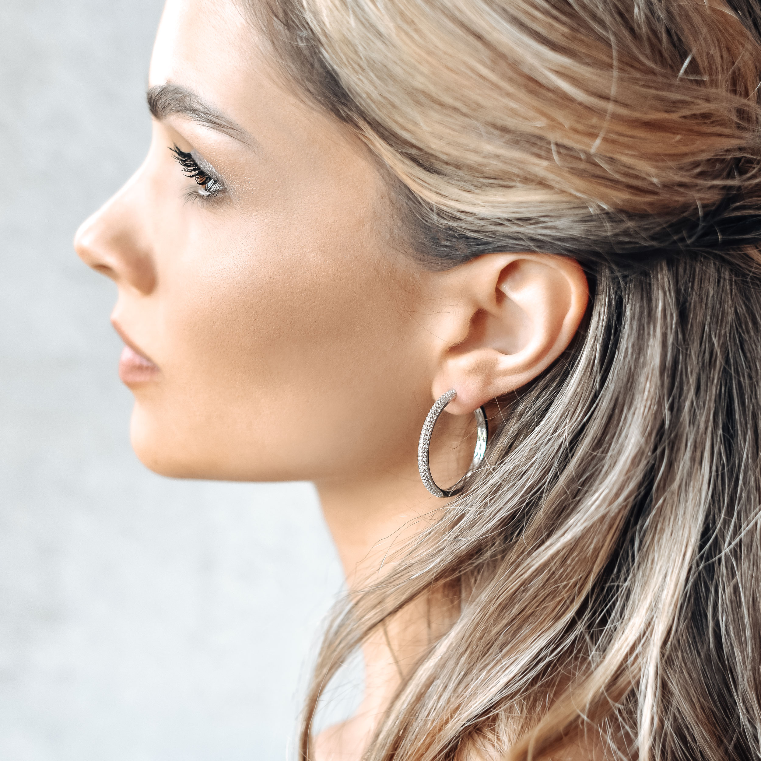 These hoops are elegant, timeless and endlessly chic. Let them shine alone or combine them. The hoops have a diameter of 3 cm and are made of 925 silver.