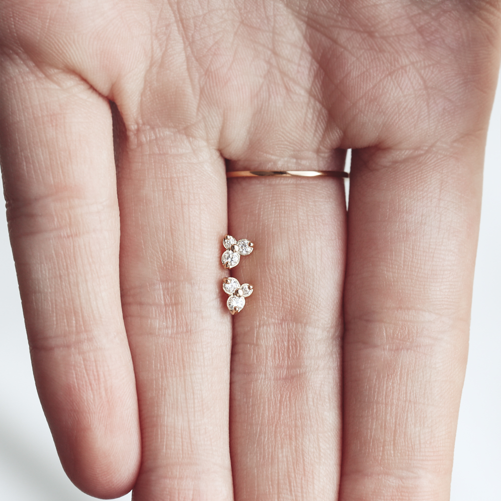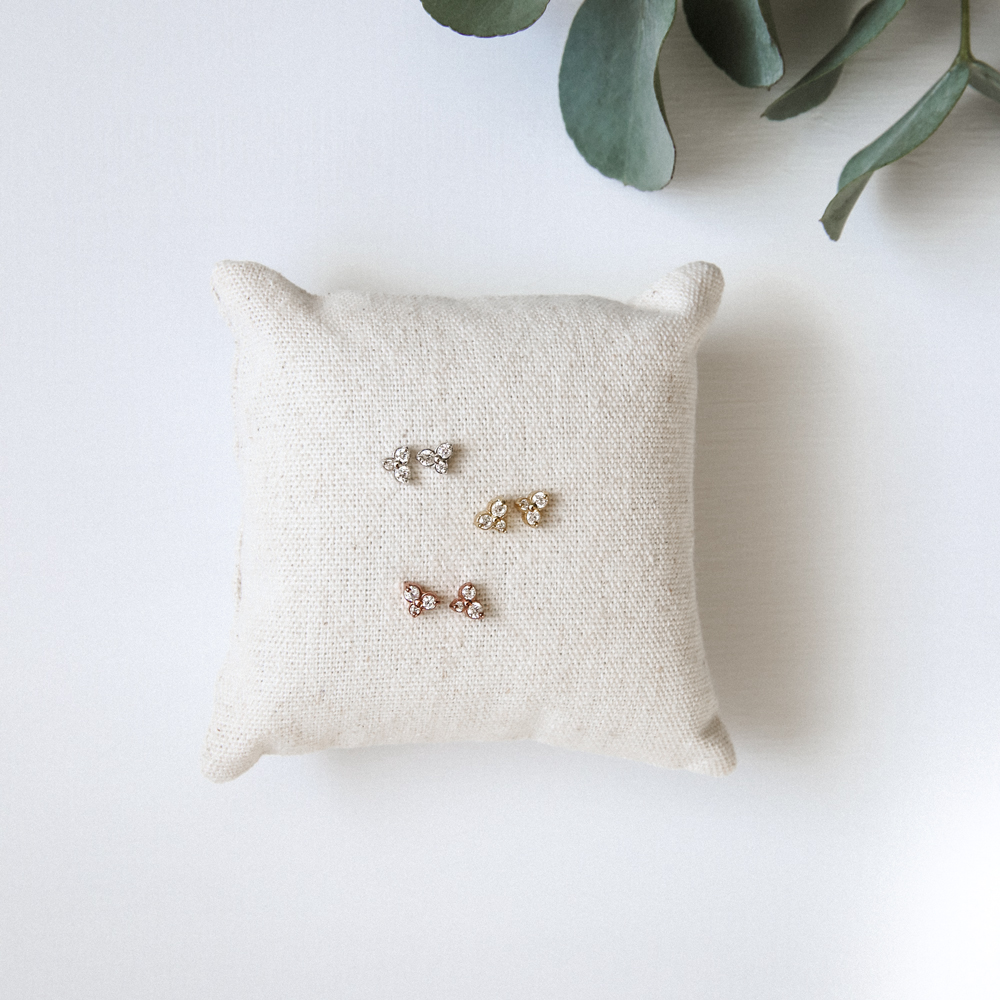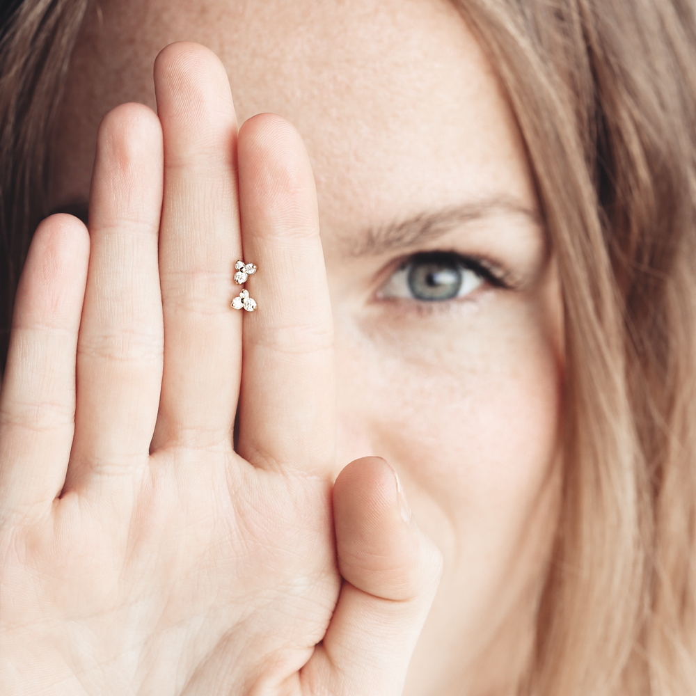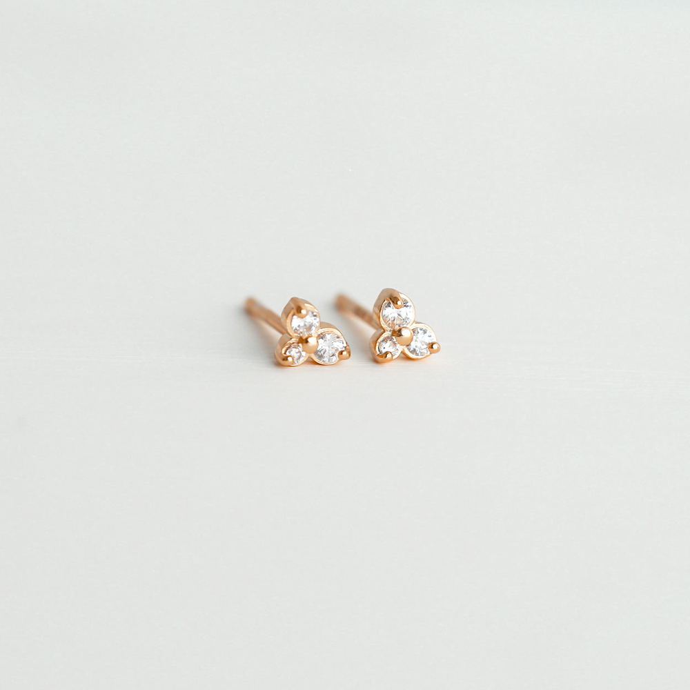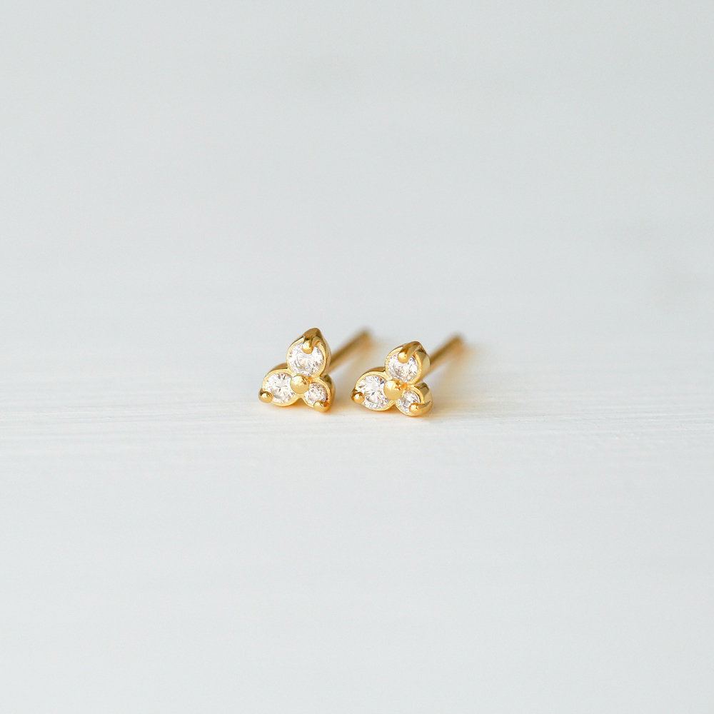 These adorable studs earrings are adorned with three seductively sparkling zirconia. The exclusive pieces of jewelry are discreet companions for every occasion. They are about 5 mm big and made of 925 silver.
